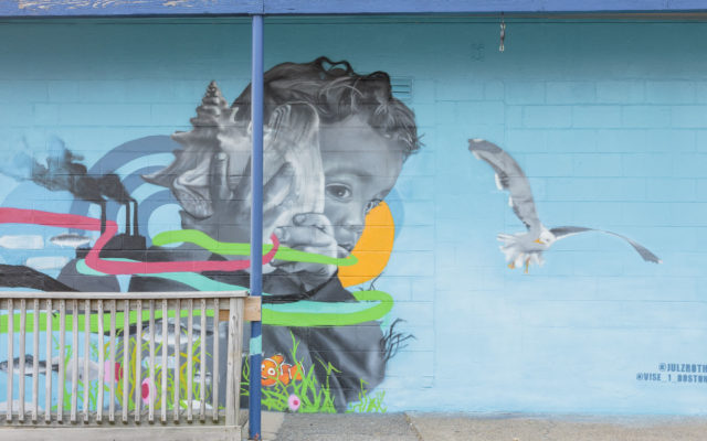 While the weather is chilly, we can still connect with the harbor! Visit the Sea Walls murals around the neighborhood, including “The Calling” by Julz & Vise1, located at 256 Marginal Street at the HarborArts Outdoor Gallery in Boston Harbor Shipyard & Marina. Other Sea Walls Boston murals can be found around the shipyard, on the Mary Ellen Welch Greenway, and at Bremen Park Condominiums at 260 Bremen Street in East Boston.